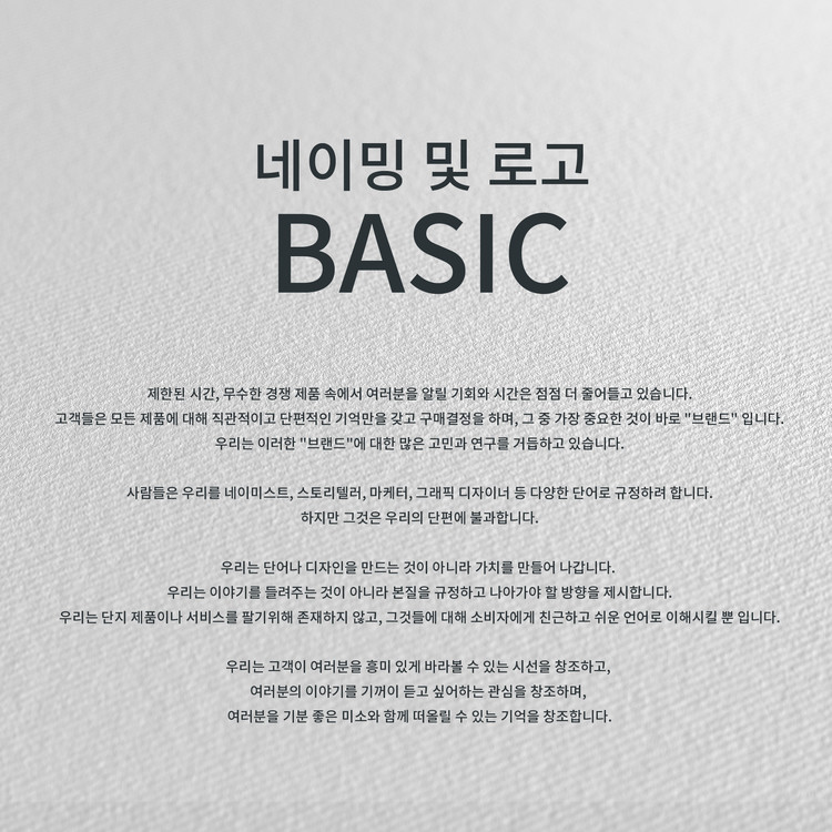 저희는 네이밍, 슬로건, 로고제작을 하나의 패키지로 제공합니다. 그 어느 것 하나도, 다른 목소리로, 다른 방향을 바라보아서는 안된다고 생각하기 때문입니다.