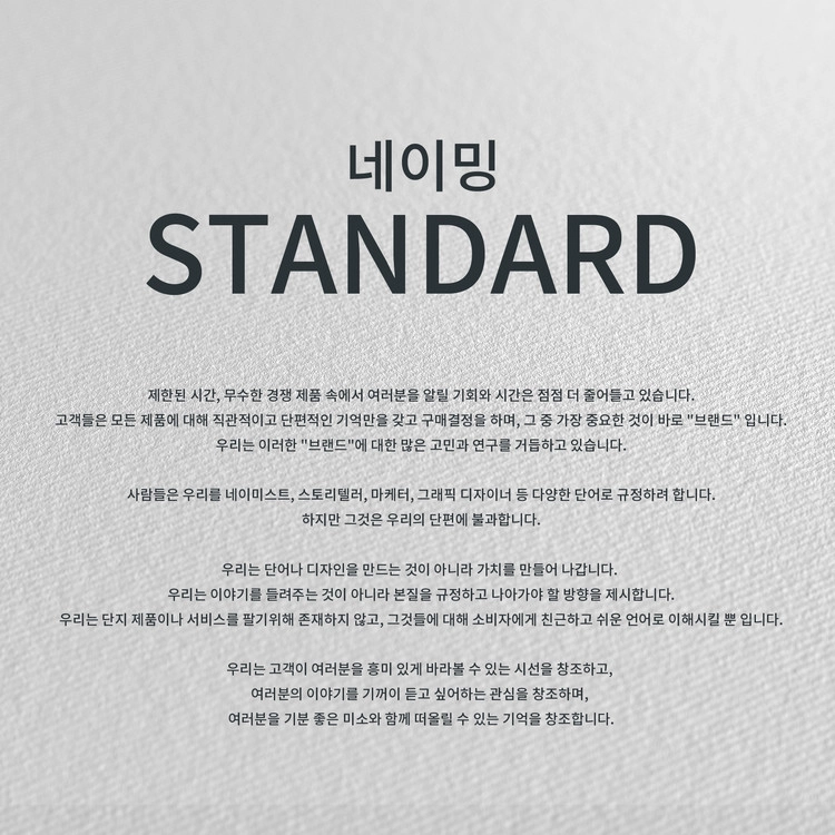 저희는 네이밍, 슬로건, 로고제작을 하나의 패키지로 제공합니다. 그 어느 것 하나도, 다른 목소리로, 다른 방향을 바라보아서는 안된다고 생각하기 때문입니다.